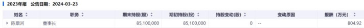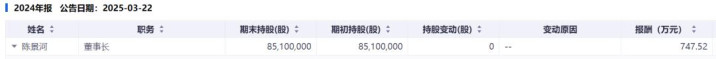年报显示,2022~2024年,陈景河年薪分别为994.48万元,804.92万元和747.52万元。他还持有紫金矿业8510万股股份,按最新收盘价计算,市值超24亿元。